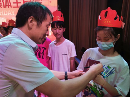 党总支书记王春生、院长高岐奎为同学们分发生日礼物