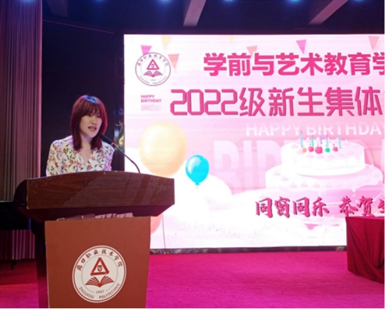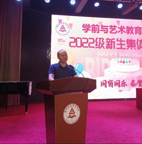 晚上7点,生日会正式开始,学前与艺术教育学院领导班子成员及22级新生辅导员出席生日会并为台上的22名新生送上祝福。本次22级新生集体生日会由副院长崔彤彤主持。