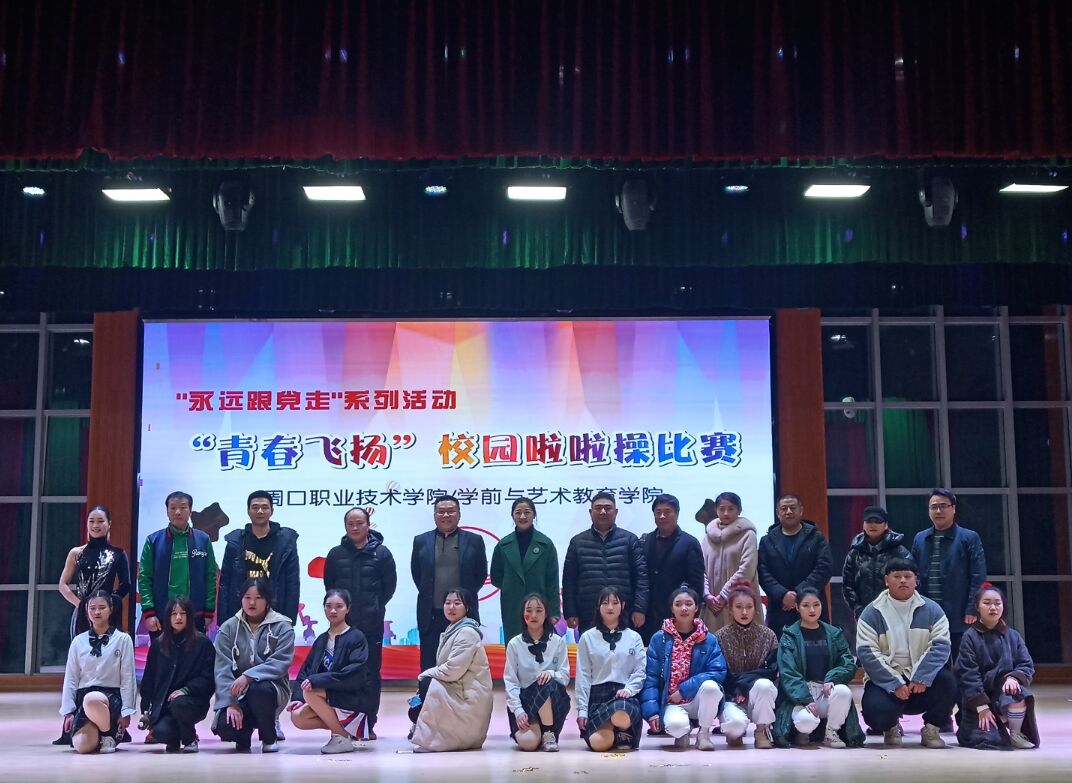 12月19日晚,我院“永远跟党走”系列活动第一届校园啦啦操大赛成功举行,本次活动以“青春飞扬”为主题,全院20个班400余名选手参加了本次比赛。