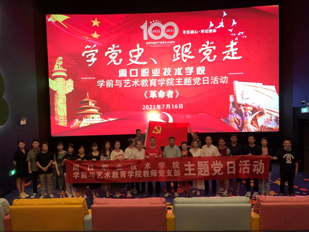 2021年7月16日下午2点,周口职业技术学院·学前与艺术教育学院党总支召开“学党史、跟党走”主题党日活动,学院全体党员同志在总支书记王爱东、院长穆向阳的带领下,走进开元路万达影城,集中观看了红色电影《革命者》。