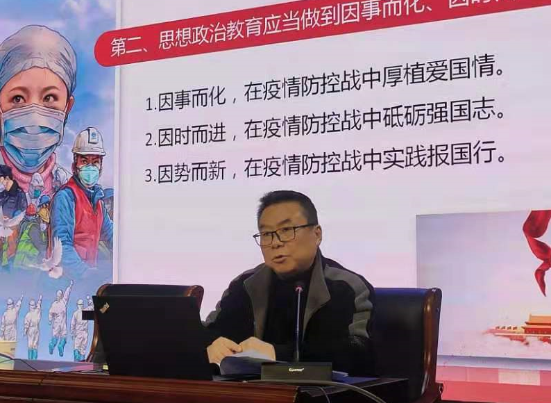 穆向阳院长从“认清当前高校思想政治教育的重要性”、“思想政治教育应当做到因事而化”、“因时而进”、“因势而新”、“如何更好地完善自身思想政治教育的素质和能力”三个方面与大家共勉,深刻的阐述了疫情防控常态化的当下,大学生思想政治教育的重要性和机遇点。