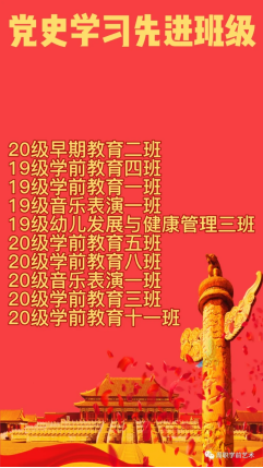 在庆祝中国共产党成立100周年之际,为深入学习贯彻习近平总书记在党史学习教育动员大会上的重要讲话精神,推动党史学习教育多样化,进一步创新学习形式、丰富学习内涵、提升学习实效,周口职业技术学院学前与艺术教育学院从学期初认真组织开展了“讲党史故事比赛”、“红歌合唱比赛”、“党史知识竞赛”、“我为群众办实事”等党史学习教育系列活动,同时还在学院微信公众号开设“学党史 铸初心”在线课堂,通过学习党史故事、开展理论学习、党史教育在线测试等方式不断推动我院党史学习教育走深走实。截至目前,“学党史 铸初心”活动共推出13期在线课堂,根据学习及答题情况进行排序,最终评选出10个“党史学习先进班级”、30名“党史学习标兵”。
