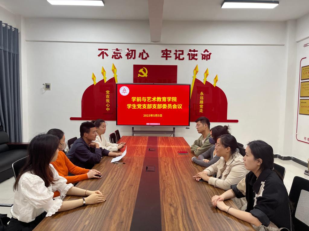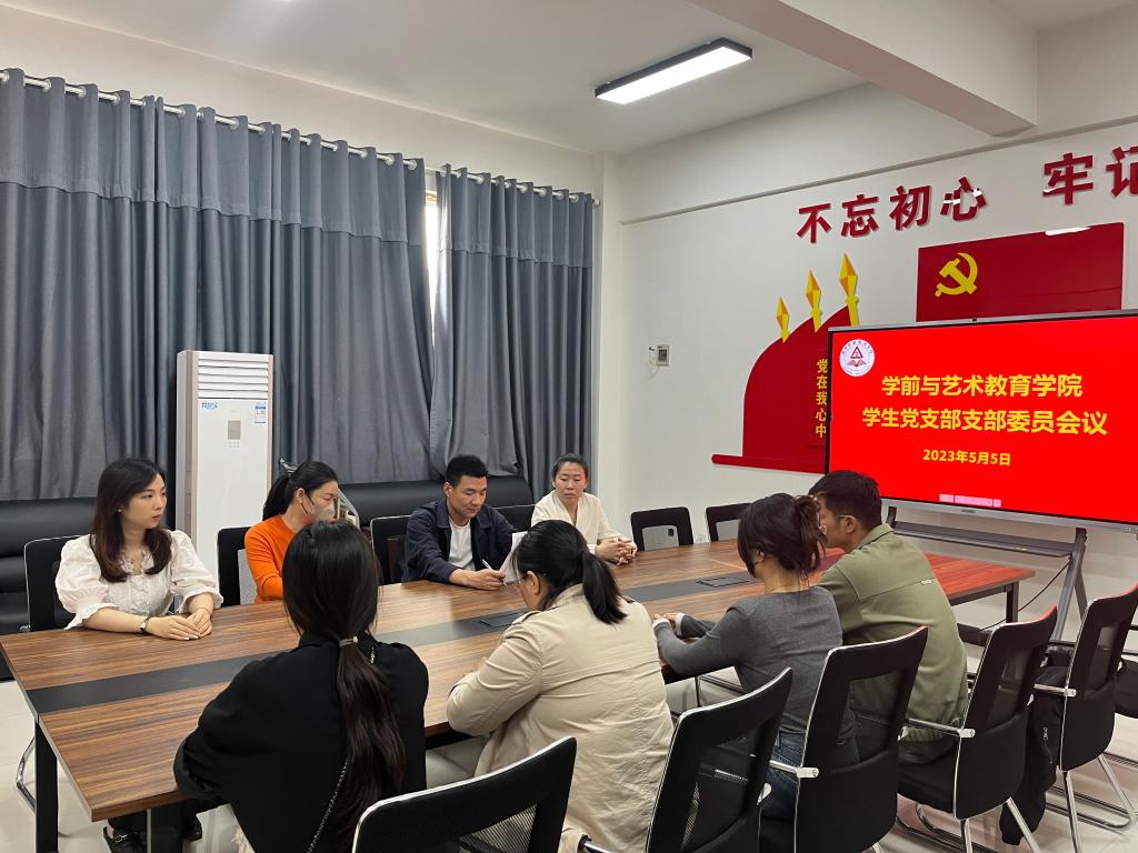 2023年5月5日,学前与艺术教育学院学生党支部在四楼党员活动室召开支部委员会,会议主要讨论确定新一批党员发展对象事宜。会议由组织委员刘馨馨同志主持,全体支部委员及21级辅导员参加会议。