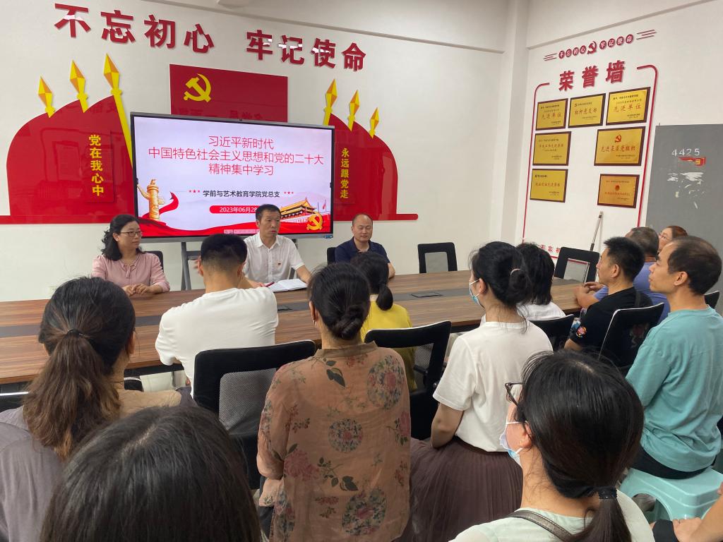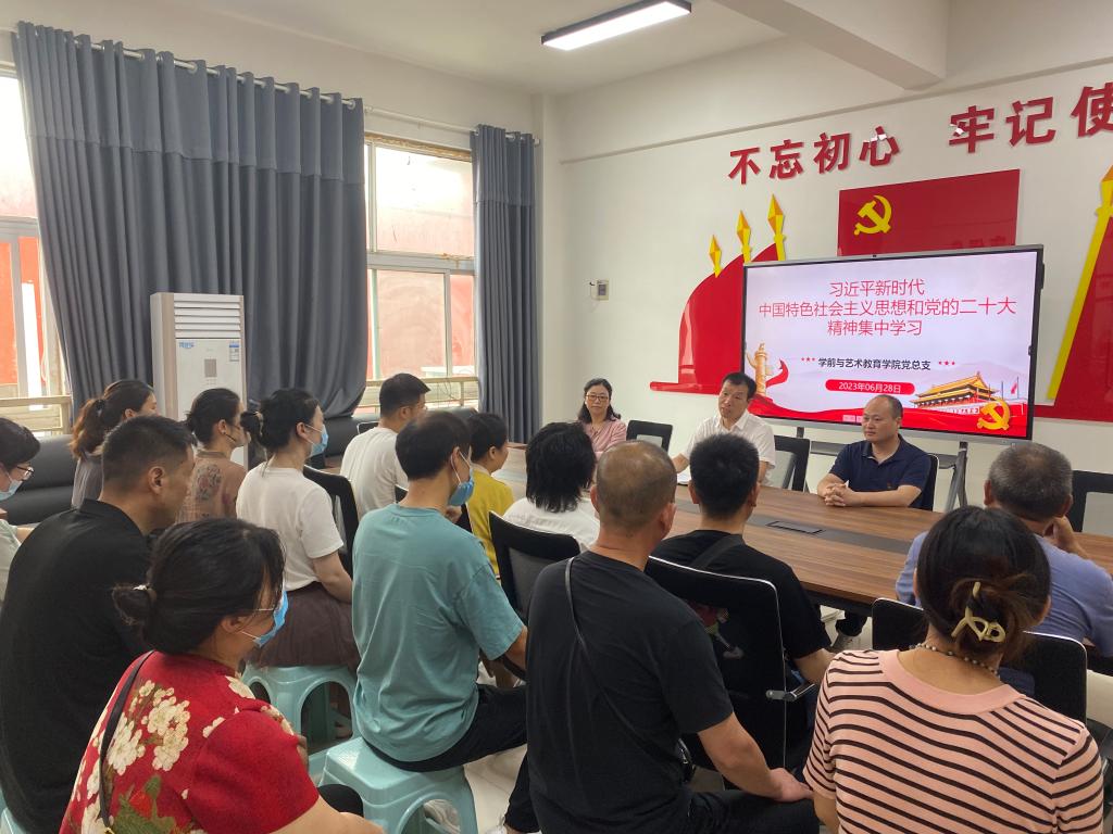 为深入学习贯彻党的二十大精神,进一步全面学习领会习近平新时代中国特色社会主义思想。6月28日上午,学前与艺术教育学院党总支组织全体党员专题学习习近平新时代中国特色社会主义思想和党的二十大精神,深刻领悟“两个确立”的决定性意义,坚决做到“两个维护”。