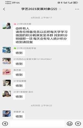 6月30日,学生党支部对党员学习进行监督,对学习标兵进行表扬,并加以奖励。通过学习,学生党支部的师生纷纷表示,“学习强国”平台便利高效,内容丰富,形式多样,寓教于乐,是实实在在的理论宝库和精神家园。