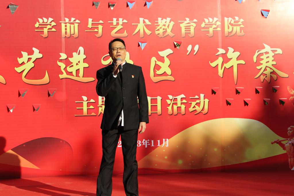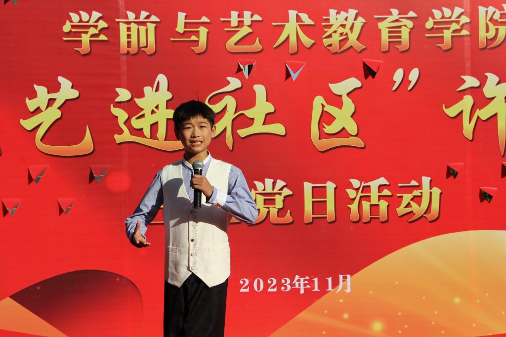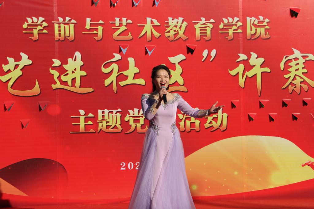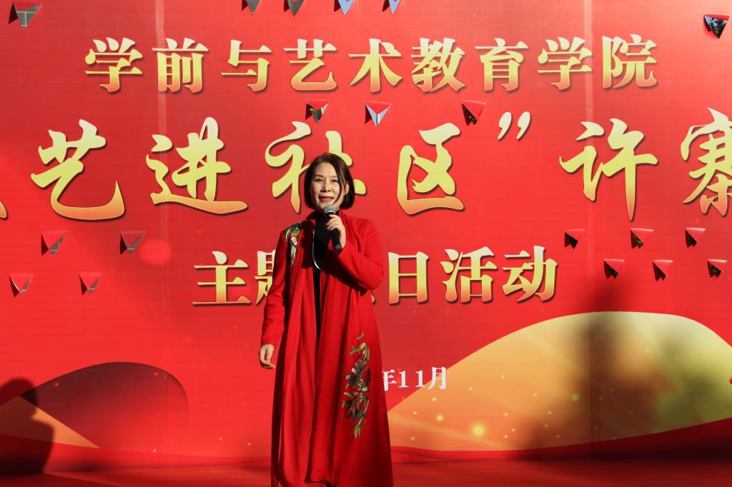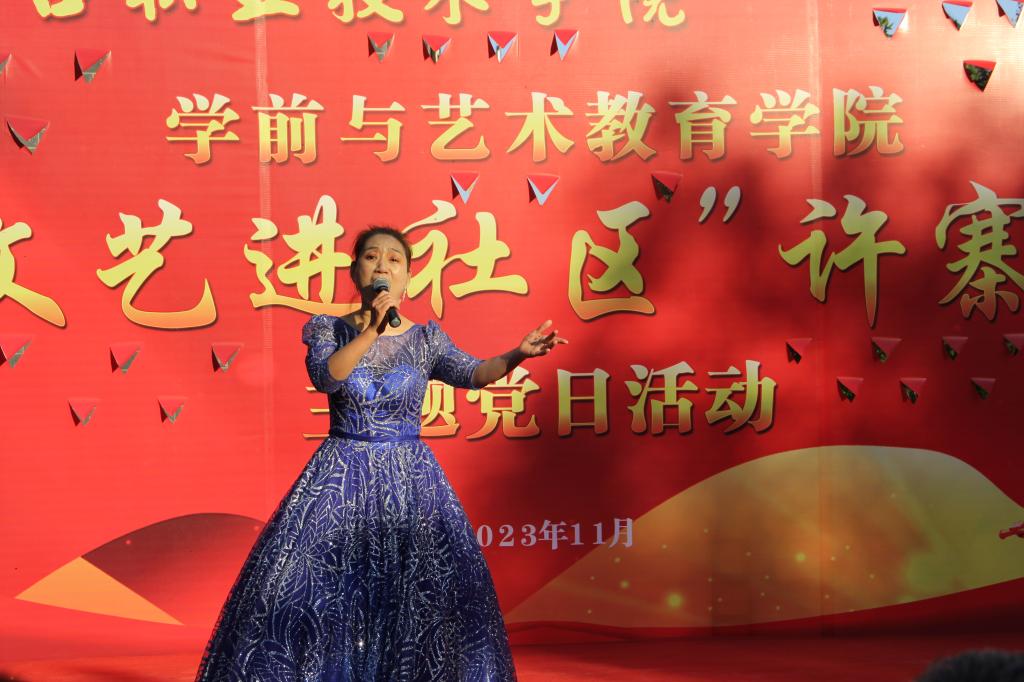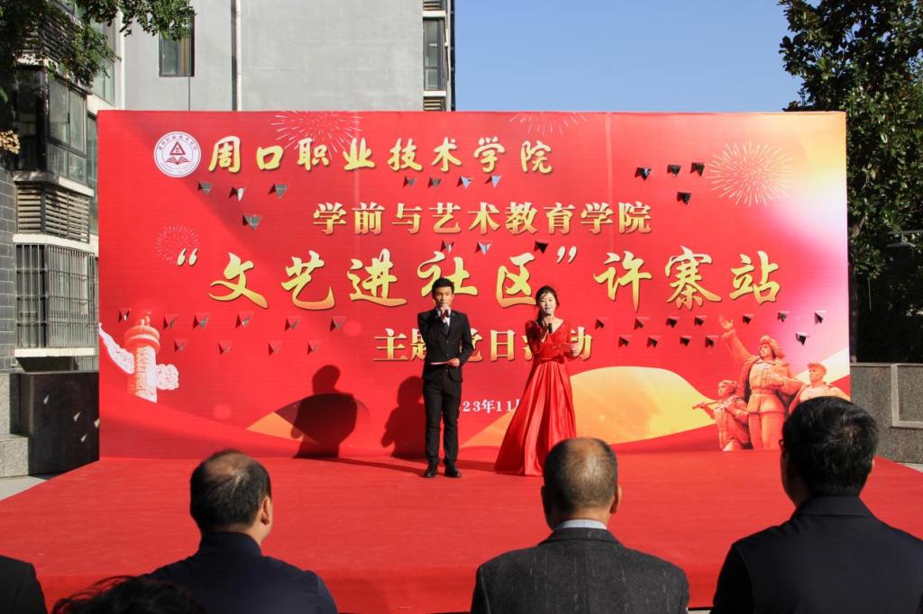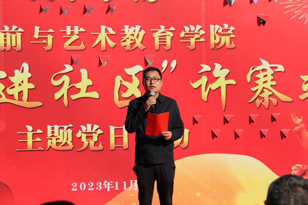 为全面深入学习贯彻习近平新时代中国特色社会主义思想和党的二十大精神,11月7日下午,学前与艺术教育学院在许寨社区开展“文艺进社区”主题党日活动。周口市经济开发区太昊路办事处主任徐方、许寨社区党支部副书记许化启、校党委副书记李明臣、副校长于爱霞、宣传部部长万四新、组织统战部部长张丹出席活动。学院全体党员、学生党员积极分子代表、许寨社区的百姓参加活动。