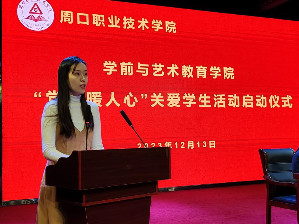 为全面贯彻党的教育方针,更好的关心与帮助学院外省学生顺利适应大学生活,加强党员教师在学生成长中的思想引领作用,12月13日下午,学前与艺术教育学院在艺术演播厅举行“党心暖人心”关爱学生活动启动仪式。学院全体党员教师、外省学生参加本次仪式,仪式由教学办主任李晨阳主持。