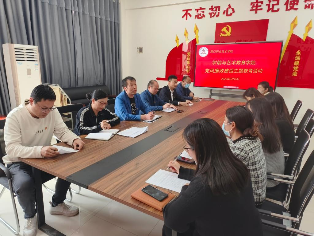 为深入贯彻廉洁作风、加强校园廉洁文化建设,丰富学院廉政教育内容,营造良好育人环境,3月16日,学前与艺术教育学院组织开展党风廉政建设主题教育活动。活动由院长高岐奎主持。