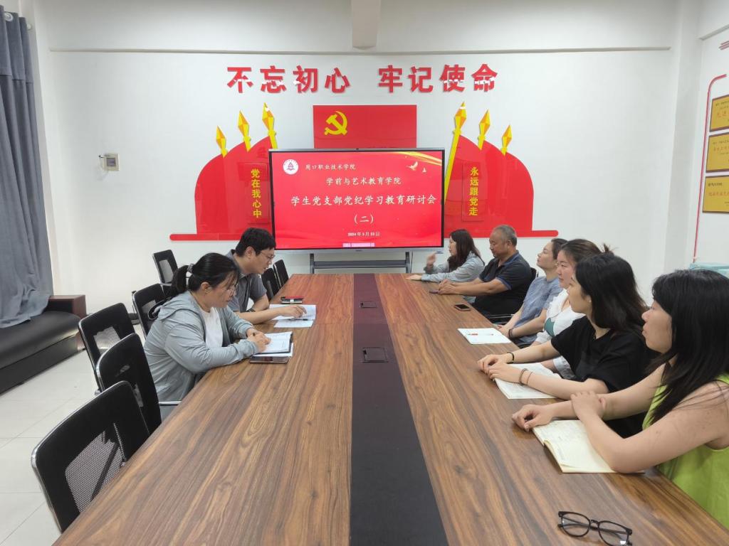 为深入学习领会习近平总书记关于党纪学习教育的重要讲话精神,落实党纪学习教育工作的部署要求,持续推动党纪学习教育走深走实,5月23日下午,学前与艺术教育学院在四楼党员活动室召开第二次党纪学习教育研讨会。学前与艺术教育学院副院长杨晨、学管办主任郑玉凡出席会议,学院学生党支部党员教师参加本次会议。