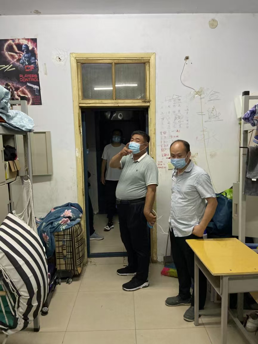 主题班会结束后,王爱东书记带领辅导员前往宿舍看望返校学生,叮嘱同学们要注意个人卫生,做好个人防护,安全用电,严格遵守封闭期间学校的各项管理制度。