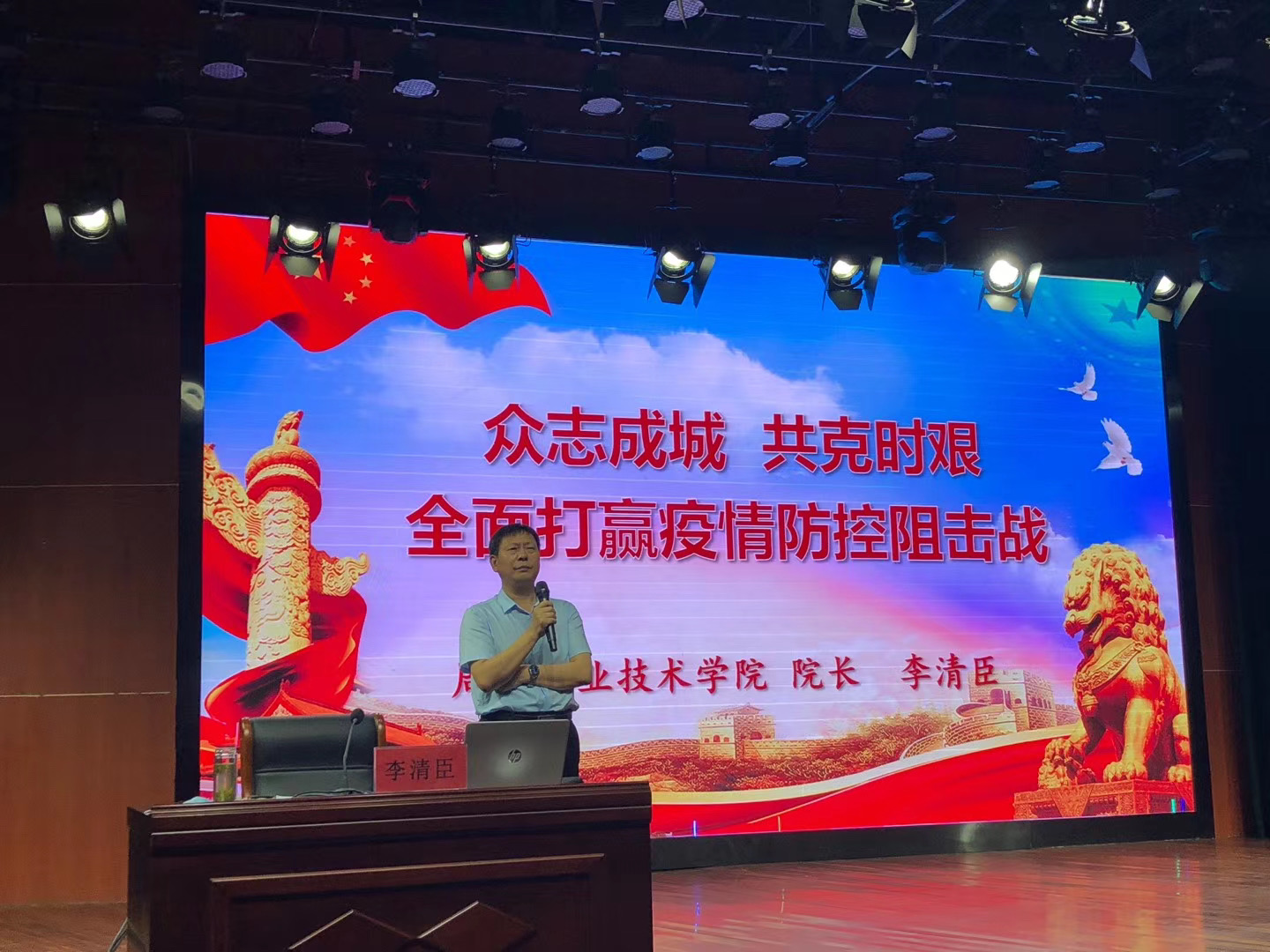 6月8日下午,周口职业技术学院校长李清臣教授以“众志成城 共克时艰——全面打赢疫情防控阻击战”为题,为周口职业技术学院全体师生上了一堂精彩的“开学第一课”。李校长开讲的“开学第一课”在学前与艺术教育学院师生中引起了强烈反响,大家纷纷表示,李校长精心打造的“开学第一课”,从中央、省、市迅速行动,坚决阻击疫情,坚决打赢阻击战;面对疫情,全国人民在行动;疫情给我们的启示与思考以及面对疫情,我们应该怎么办四个方面进行阐述,主题切合时势,内涵丰富,为全校师生上了一节战“疫”期间思政示范课,是学校开展“把灾难当教材 与祖国共成长”主题教育活动的生动教材,也是难得的“人生一课”。