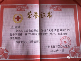在这场无声的战斗中,田园园同学不仅仅只是在社区执勤,她还为此次疫情防控捐赠了自己辛苦积攒的一千块钱。她说:“这个春节寒假对我来说,真的是难以忘却。每天的疫情新闻,我都格外关注,盼望着好消息的发生。我们在过年,84岁的钟南山院士却和众多医护人员一起在最危险的抗疫一线,不分昼夜的帮我们过关。他们的担当与无私,让自己深受感动。受疫情影响,湖北许多地方出现了医疗物资告急的情况,作为一名学生,虽然无法在一线与病毒抗争,但我希望捐赠出自己积攒的一千块钱,为这场战役尽些绵薄之力。湖北不孤单,我们和你站在一起。”