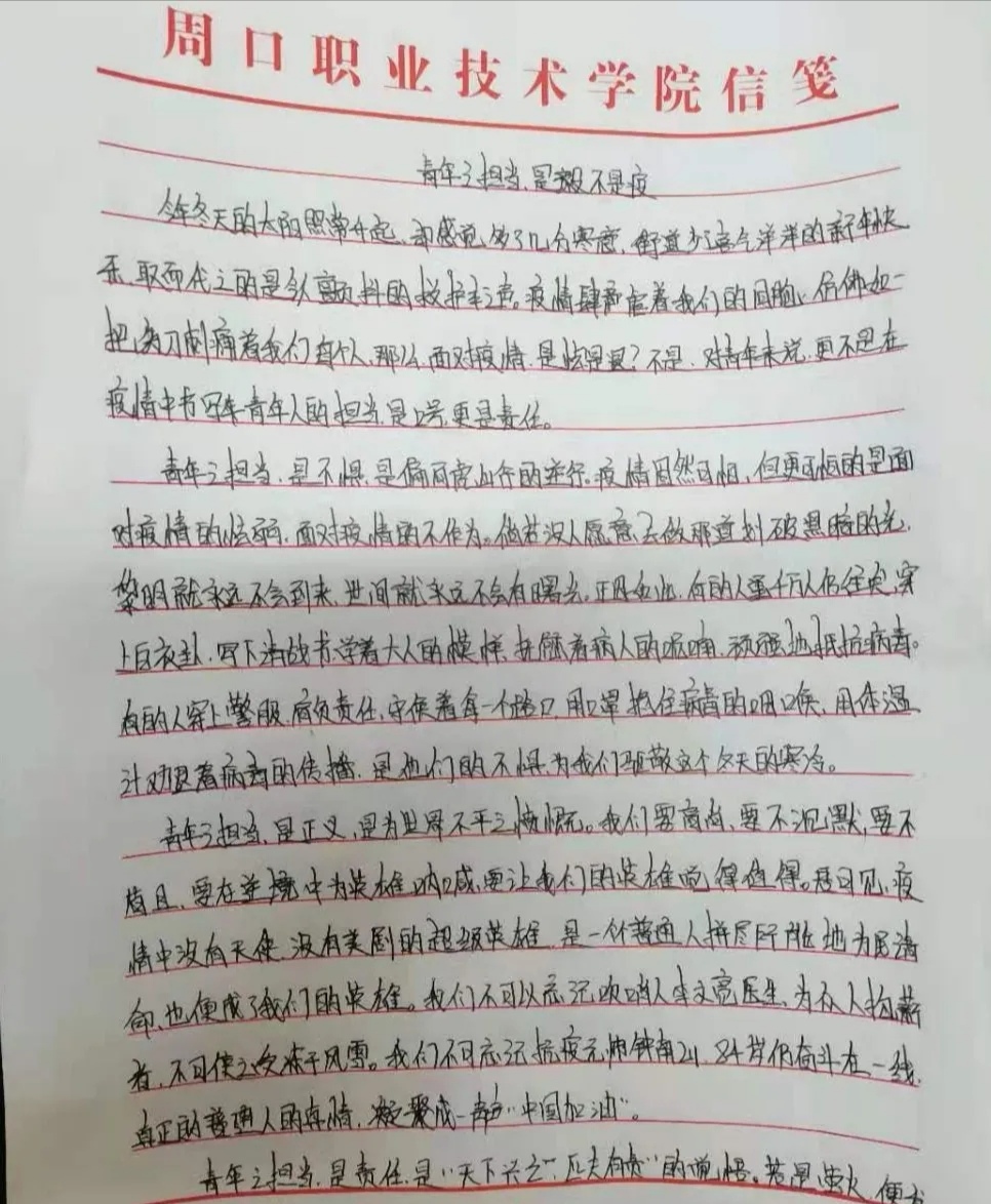 此次征文比赛,厚植了爱国情怀及责任担当,彰显了新时代青年风采,传递了正能量,营造了健康向上的校园文化氛围。