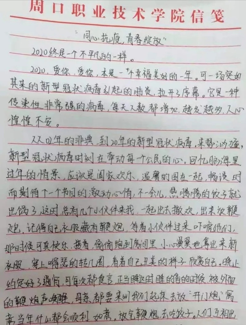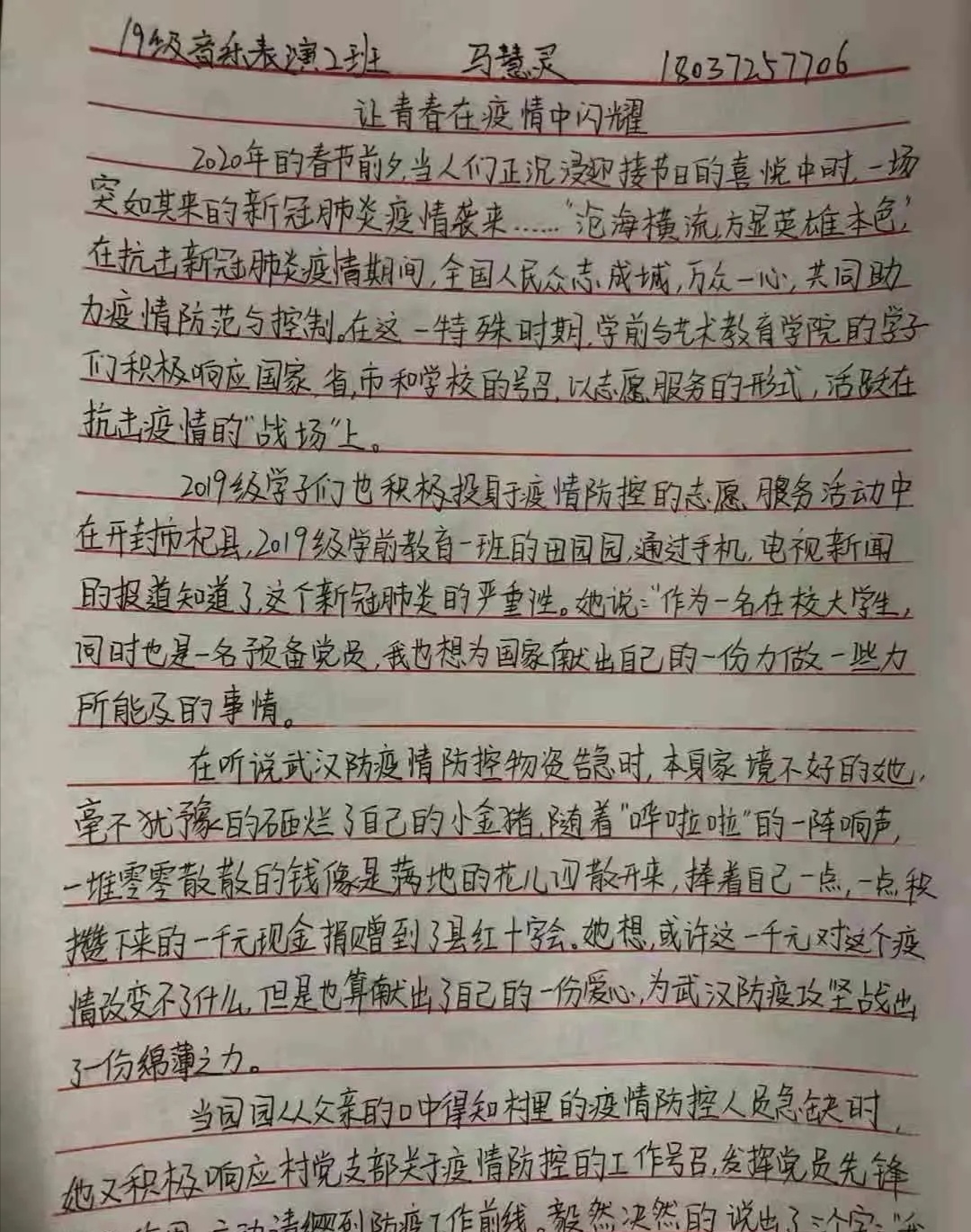 为了讲好身边的抗疫故事,向战疫优秀典型人物学习,进一步做好大学生思想政治工作,培养大学生健康心理和提高自我调适能力,学前与艺术教育学院于12月14日-20日举办了以“同心抗疫,青春绽放”为主题的征文比赛。