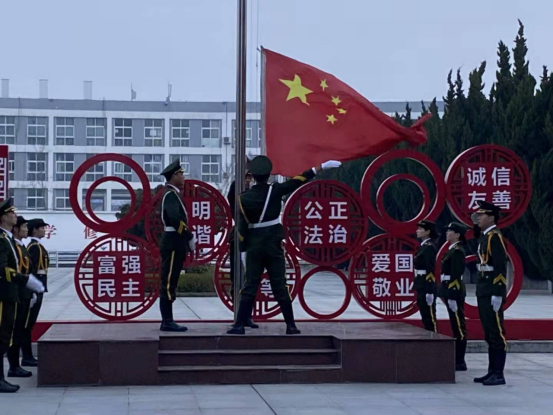 6点40分,迎着初升的朝阳,国旗护卫队迈着铿锵有力的步伐走向国旗台,慷慨激昂的《义勇军进行曲》奏响,鲜艳的五星红旗缓缓升起,全场师生注目凝望、高声歌唱,用赤子之心表达对伟大祖国的热爱,用深情祝福抒发对伟大中华民族的赞颂,用携手奋进共襄对伟大时代的憧憬。