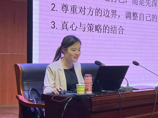 在讲座中,王老师从恋爱的过程和爱的能力的培养两个方面进行了详细讲解,通过真实、鲜活的事例,教导同学们如何正确对待爱情,如何处理好爱情和学业之间的关系。在讲座中与同学们互动,解答同学们对于爱情的困惑和问题。王老师生动幽默的语言蕴藏了深奥的哲理,丰富生动的事例直观形象,贴近同学们生活,引发同学们的共鸣,整场讲座赢得了同学们的阵阵掌声。
