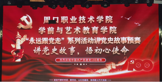 为了深化爱国主义教育,迎接中国共产党建党一百周年,培养学生爱国主义情操和中华民族自豪感。2021年5月6日,学前与艺术教育学院在一楼演播厅举行了“讲党史故事,悟初心使命”为主题的比赛预赛。