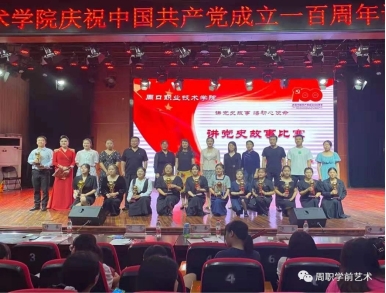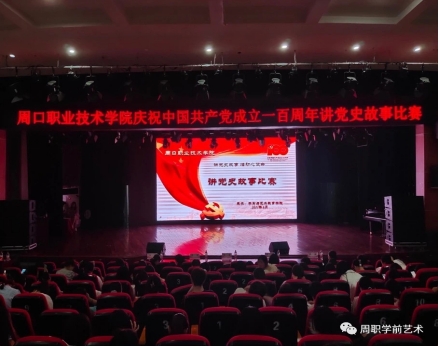 为庆祝中国共产党成立100周年,重温党的光辉历程,深入推进党史学习教育,充分展现出当代大学生真挚的爱国精神和家国情怀,6月14日晚上7点,学前与艺术教育学院在砺德厅举办了周口职业技术学院“讲党史故事 悟初心使命”讲党史故事比赛。李明臣副校长出席本次大赛,刘冬霞、唐文杰、史丽珍、袁玉红和郑文娟担任此次比赛的评委,共11个选手参加了比赛,近千名学生现场观摩学习。