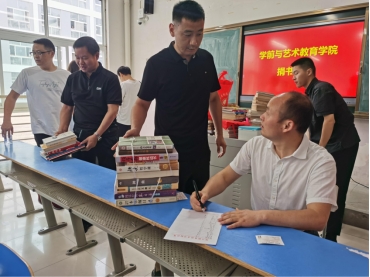 奉献爱心,收获希望。为了丰富我校图书馆资源,传递知识与爱心,6月17日上午,学前与艺术教育学院在教学楼4133教室面向我院全体教师举办了爱心捐书仪式,活动由副院长高岐奎主持,学院党支部书记王爱东、院长穆向阳、副院长王春生及我院全体教师参加了本次捐书活动。