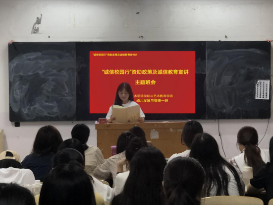 为贯彻落实立德树人根本任务,全面宣传党和国家的学生资助政策,充分发挥资助育人功能,增强当代大学生的诚信意识和责任意识。6月10日—7月3日,学前与艺术教育学院开展“诚信校园行”资助政策及诚信教育宣传月活动。