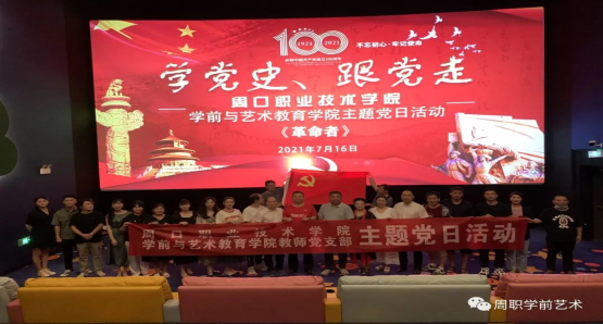 2021年7月16日下午2点,学前与艺术教育学院党总支召开“学党史、跟党走”主题党日活动,学院全体党员同志在总支书记王爱东、院长穆向阳的带领下,走进开元路万达影城,集中观看了红色电影《革命者》。