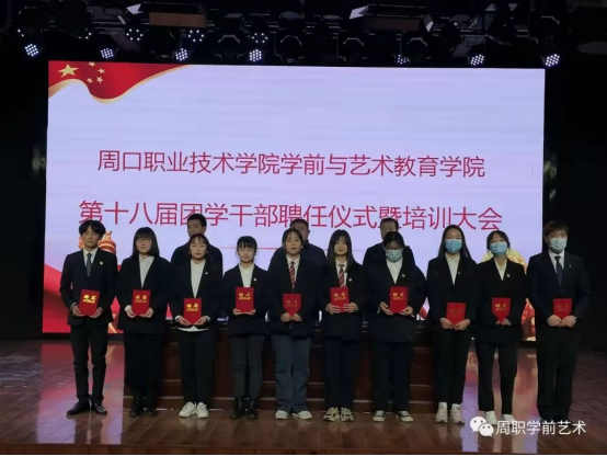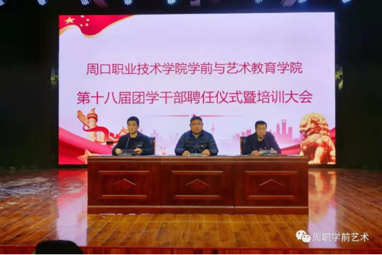 11月21日下午,周口职业技术学院学前与艺术教育学院在一楼演播厅举行第十八届团学干部聘任仪式暨培训大会。学院全体学管人员及学生干部参加了此次大会。