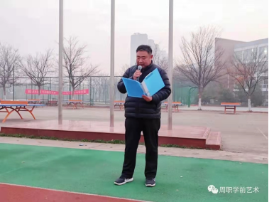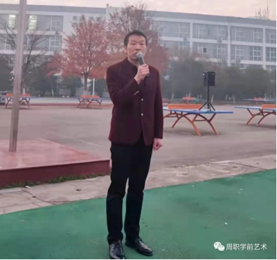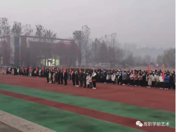 11月29日早上,周口职业技术学院学前与艺术教育学院在操场隆重举行了升旗仪式,学院领导班子、辅导员和全体学生参加了升旗仪式。仪式由副院长王春生主持。