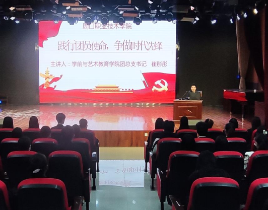 为深入贯彻落实习近平总书记青年工作思想,引导广大青年不忘初心、牢记使命,坚定不移听党话、跟党走,学前与艺术教育学院团总支于11月21日在一楼演播厅成功举办“践行团员使命争做时代先锋”主题团课活动。学院团总支学生会全体干部、部分团支部书记及入团积极分子参加了此次活动,本次团课由团总支书记崔彤彤主讲。