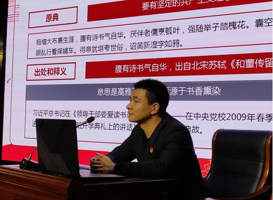 崔彤彤老师围绕“团员青年如何锤炼品德、提升能力、敢于担当”这三个方面做了深入浅出、图文并茂的详细阐述。他要求全体学员要牢记习近平总书记对新时代青年的六点要求:要树立远大理想、要热爱伟大祖国、要担当时代责任、要勇于砥砺奋斗、要练就过硬本领、要锤炼品德修为。