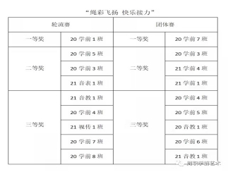 经过两个小时的激烈角逐,最终20学前1班和20学前7班分别夺得团体赛轮流跳和集体跳的冠军。