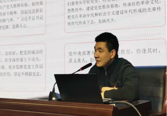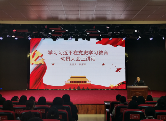 12月3日下午,学前与艺术教育学院学生党支部在一楼演播厅开展党史学习教育专题党课。支部委员崔彤彤主讲,学院全体入党积极分子参加了本次培训。