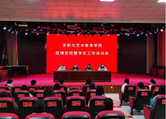 为进一步将学生日常管理及疫情防控工作抓紧、抓细、抓实,给学生的健康安全保驾护航,周口职业技术学院学前与艺术教育学院于3月27日晚上6点,在一楼演播厅召开了疫情防控暨学生工作培训会。党支部书记王春生、副院长崔彤彤、学管办主任郑玉凡、团总支书记刘馨馨及全体学生干部参加了本次会议。