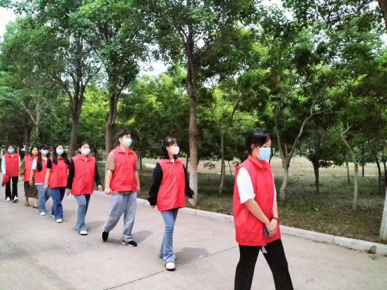 本次社会实践活动内容与疫情防控工作协同开展,党员发展对象自行分组,分时间段在校内巡逻,防止同学们靠近栅栏与外界接触,避免不必要的危险,在巡逻期间志愿者们认真负责,及时引导、规劝有外出动机的同学,积极投身于此次实践活动,共同为校园防疫贡献自己的一份力量。