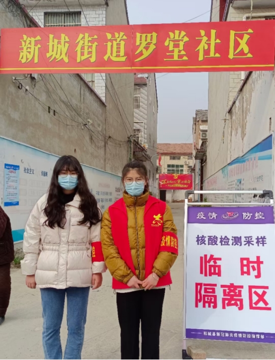 2021级学前教育四班的朱玥垚同学,来自河南省周口市鹿邑县,在面对这突然再次暴发的疫情,作为一名青年大学生,积极主动报名参加了当地的疫情防控志愿者活动,与当地的志愿者同志一起抗疫。她主要负责在村口值班站岗,登记信息,到村里统计核酸检测情况等工作。