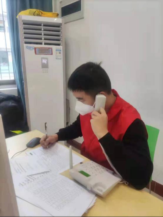 2020级音乐教育一班的樊龙飞同学,来自河南省郑州市,在面对家乡严峻的疫情形势,主动请缨成为当地抗疫志愿者,他主要负责疫情防控流调工作,打电话和从中高风险返回人员沟通现在住址以方便社区和返回人员联系等工作。
