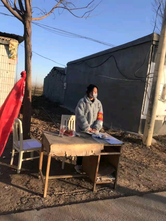2021级学前教育四班的孙梦新同学,来自河南省兰考县迎宾路人和春天,在疫情防控期间,她积极响应号召,在本地村口卡点值班站岗,登记返乡人员、进行信息采集、测量体温和协助进行当地核酸检测工作。