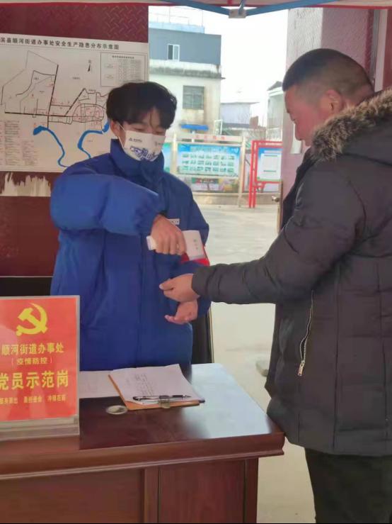 21级学前教育三班的杨胜妮同学,家住河南省濮阳县,在得知疫情来临之际,她自愿参与到当地的疫情防控志愿者服务活动中,对外来人员进行统计、排查,对进出人员进行登记信息。她说,作为一名青年大学生,在疫情期间,要勇于担当、积极行动;在疫情面前,从不畏惧,抗击疫情,我们共同努力!