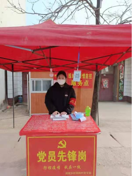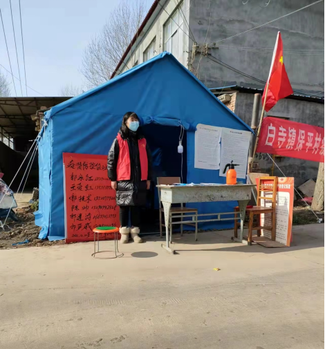 20级音乐教育一班的郭明月同学,家住河南省周口市商水县白寺镇保平村,在疫情防控期间,积极投身于当地的疫情防控志愿者服务活动中。她的主要工作是在村庄入口疫情卡点处执勤站岗,查看来往人员的健康码、行程码,对返乡人员进行测量体温和信息登记等。