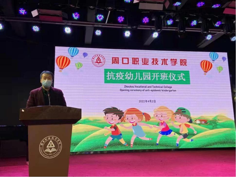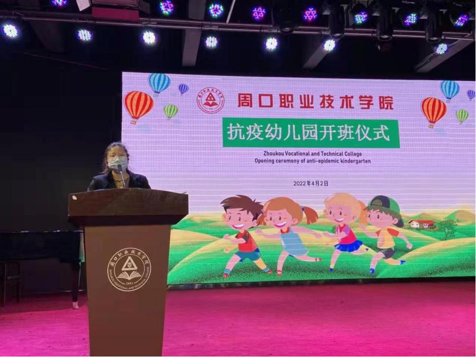 4月2日下午,周口职业技术学院“抗疫幼儿园”开班仪式在演播厅顺利举行。开班仪式由学前与艺术教育学院承办,学院党总支书记王春生主持,学前与艺术教育学院院长高岐奎、“抗疫幼儿园”园长陆雨涵、教师代表和来自8个家庭的小朋友参加了仪式。