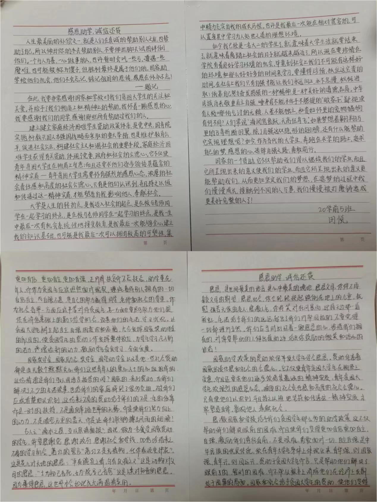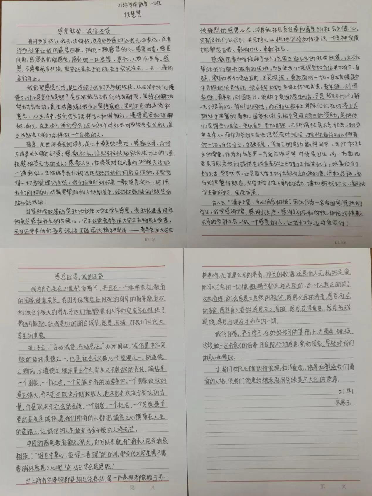 本次活动以资助政策专题讲座、主题班会、主题黑板报、主题征文、“感恩助学,诚信还贷”演讲比赛及资助学生典型事迹等多种方式进行。丰富多彩的资助育人活动,以育人为导向,多渠道、多层次、全方位的宣传了国家资助政策,增强了学生的社会责任感,着力培养学生的诚信意识和感恩意识。