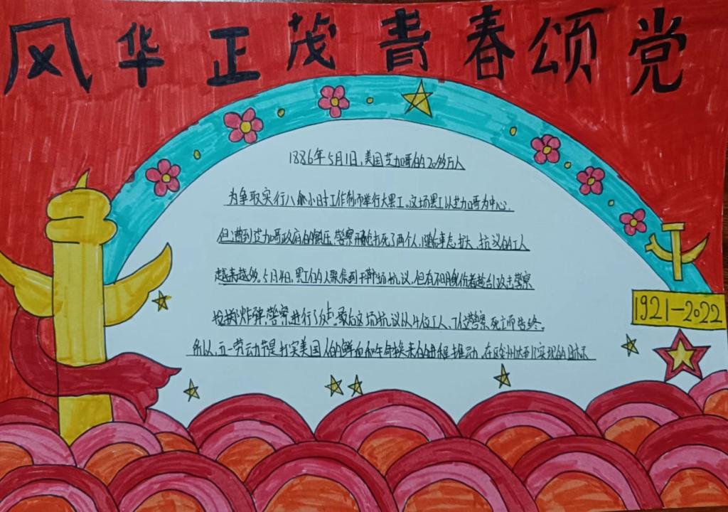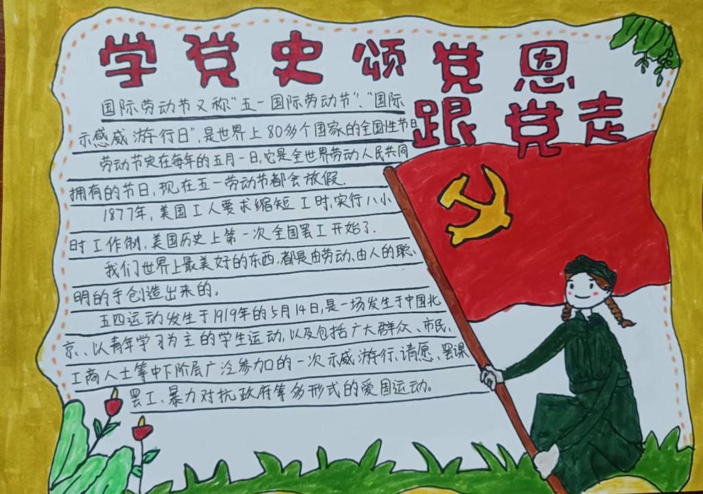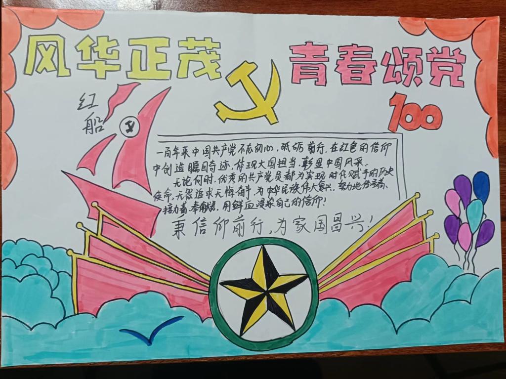 此次主题手抄报活动,更加细致的向同学们展示了党的光荣传统、宝贵经验和伟大成就,坚定了学生们热爱党、拥护党的信念,激发了学前与艺术教育学院学子报答党恩、一心跟党走的思想情感。