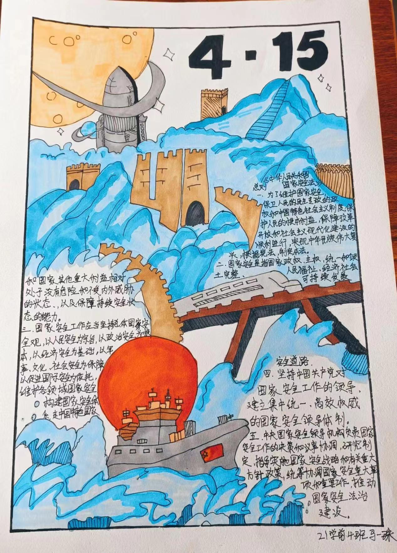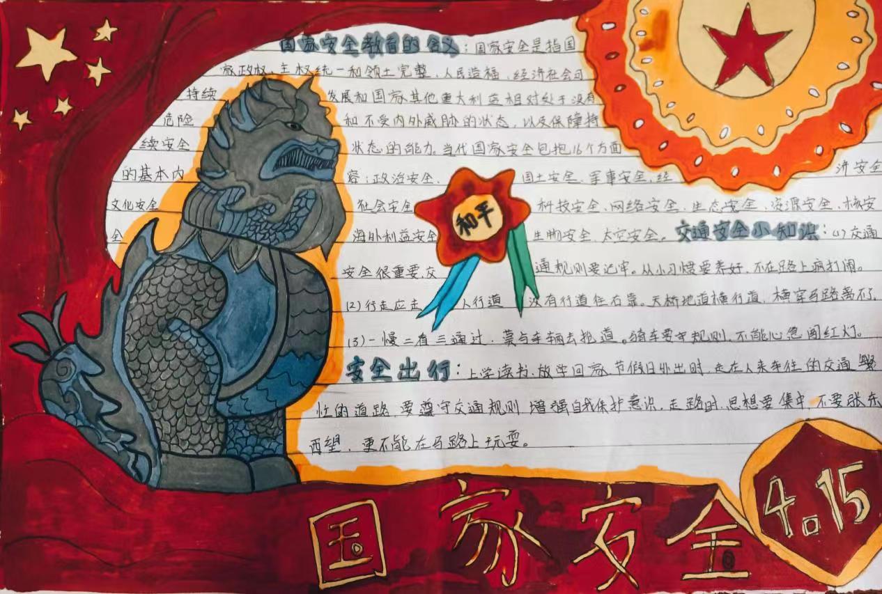 活动中,同学们积极参与。借助手中的画笔绘制了一幅幅主题鲜明、思想积极、内容丰富、设计新颖的手抄报作品,普及国家安全知识,宣传国家安全理念。