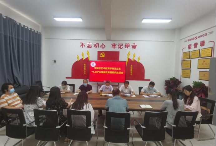 为深入贯彻落实习近平总书记关于防灾救灾减灾工作的重要论述和指示批示精神,5月30日下午,学前与艺术教育学院党总支在四楼党员活动室召开“7•20”以案促改专题组织生活会。学院党总支、教师支部、学生支部委员参加会议,副校长李明臣同志以普通党员身份参加此次组织生活会。会议由学院党总支书记王春生同志主持。