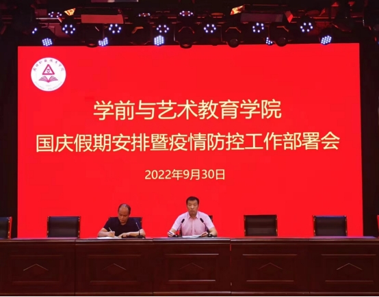 国庆假期即将来临,为进一步落实学院在国庆假期期间的工作安排,全面部署假期的疫情防控管理,切实提高学生在国庆假期的安全意识。9月30日上午,学前与艺术教育学院在学院一楼演播厅组织召开国庆假期安排暨疫情防控工作部署会,学院党总支书记王春生、院长高岐奎,全体辅导员及学生干部参加此次工作部署会。