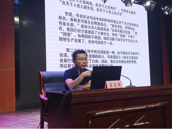 讲座中,李玉坤老师围绕“中国传统文化进校园,家国情怀与传统文化”的主题,从什么是家国情怀、大学生该如何培养家国情怀、周口的历史文化等方面讲述,用老一辈革命家的鲜活事例,用生动有趣的语言和渊博的学识,教育学生要努力学习优秀传统文化智慧,不断认识自己、开发自己、成就自己。