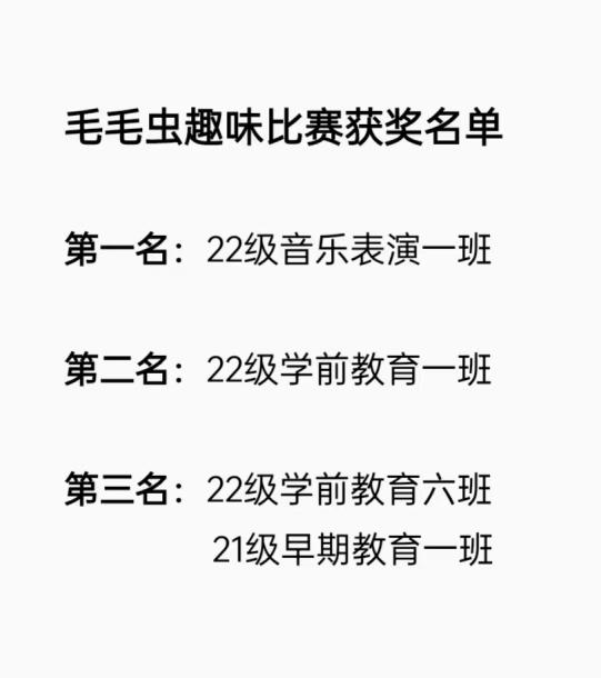 在老师和同学们的欢声笑语中,学前与艺术教育学院毛毛虫趣味比赛圆满落下帷幕。同学们在此次活动中积聚健康向上的能量,展现青春活力和热情,同时在紧张的学习之余让身心得到充分放松,丰富了校园生活,提高了班级集体荣誉感,增强了师生凝聚力。学前与艺术教育学院师生用积极行动和乐观的面貌一起面向未来,共同迎接党的二十大的召开。