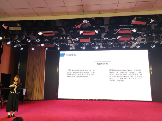 海选赛上,从各个班级脱颖而出的优秀学生在演讲时声情并茂,各抒己见,不仅展示出精彩纷呈的PPT,还利用有限的时间将自己对未来职业生涯的规划展现的淋漓尽致。学生结束演讲后,评委老师对参赛的同学进行点评。