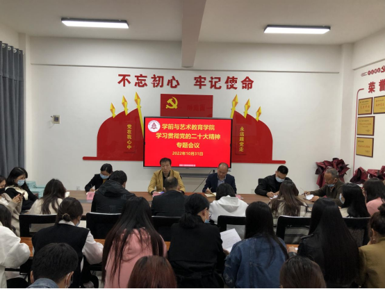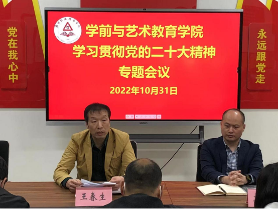 10月31日下午,学前与艺术教育党总支书记王春生主持召开学前与艺术教育学院班子(扩大)会议,传达学习党的二十大和二十届一中全会精神,研究部署学习贯彻工作,奋力推进学前与艺术教育学院各项工作发展。教研室主任、全体辅导员参加会议。