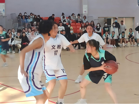 比赛开始,随着裁判哨声的响起,双方队员迅速进入比赛状态。篮球在女篮队员们的手上抛出一条完美的弧线,“哐当”一声,一记漂亮的进球。周围马上响起了欢呼和掌声,现场的氛围也瞬间被点燃。赛场边,党总支书记王春生,院长高岐奎,副院长崔彤彤,团总支书记刘馨馨,辅导员老师们以及同学们加油呐喊,为女将们加油打劲儿。