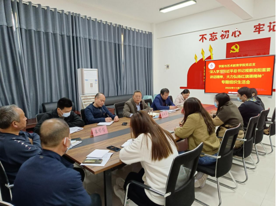 11月14日下午,学前与艺术教育学院党总支在学院党员活动室召开“深入学习习近平总书记视察安阳重要讲话精神,大力弘扬红旗渠精神”专题组织生活会。副校长李明臣同志以普通党员身份参加会议,学前与艺术教育学院在校教师党员参加会议。会议由学前与艺术教育学院党总支书记王春生同志主持。